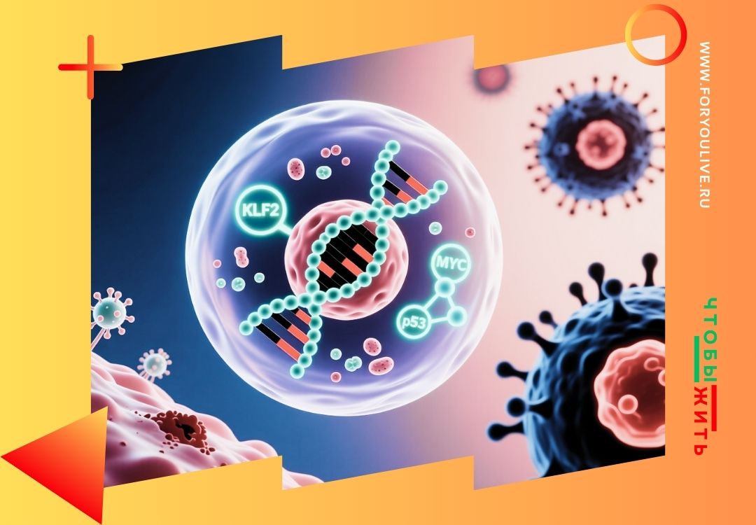 Эта программа связана с активацией белка p53 и фактора KLF2, которые известны как регуляторы клеточного цикла. В результате клетка перестаёт делиться и как бы «замирает». Одновременно снижается активность генов, отвечающих за рост и обмен веществ, включая важный регулятор MYC. В такой «усыплённой» клетке вирус остаётся в скрытой форме, не производя новых копий, но сохраняя способность активироваться в будущем.